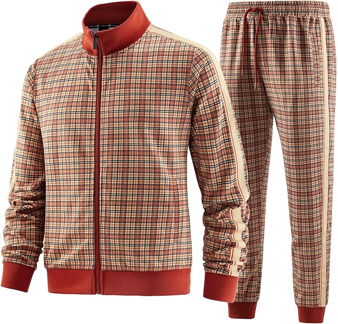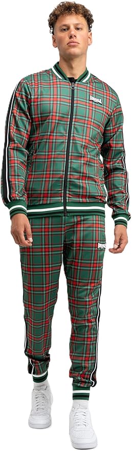 Dieser Herren-Jogginganzüge kommen denen aus dem Film schon wirklich sehr nah. Sie haben den selben Stil wie Bomber-Jacken und die Gummis sind ebenfalls mit horizontalen Streifen versehen. Leider lassen sich Streifen am Arm genau so wie im Film nicht wieder finden. Die Anzüge besitzen ebenfalls das Plaid-Muster und kein einfaches Buffalo-Muster. Leider sind auch diese Jogginganzüge nicht gesteppt. Allerdings konnte ich allgemein keine gesteppten Jogginganzüge finden. Es gibt auch ein paar hellere Modelle im Gegensatz zum Film.