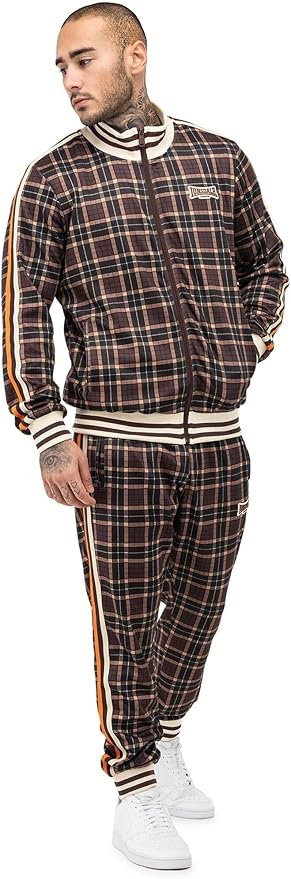Die Trainingsanzüge sind preislich im mittelpreisigen Bereich. Wer sich einen originalen Trainingsanzug von Lonsdale leisten möchte, für den habe ich hier die 5 Modelle gefunden. Der technische Stoff wurde mit einem Allover-Print an Anzugstoffen angelehnt und kommt denen aus dem Film The Gentlemen sehr nahe. Sowohl die Jacke als auch die Hose haben Taschen. Er besitzt elastische Bündchen mit farblichen Akzenten. Die deutsche Version hat das Logo von Lonsdale als Schriftzug auf der Brust und der Hose. Die englische Version hat auf dem Trainingsanzug einen Löwen an der Brust und der Hose.